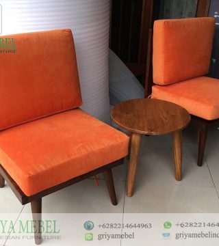 Set Kursi Teras Minimalis yang bergayakan retro dengan menampilkan desain minimalis yang simple. Dari material kayu jati, finishing warna brown jati memaksimalkan desain dan warna kayu. Set kursi teras yang terdiri dari 2 kursi single minimalis dengan bantalan yang bisa dicopot pada dudukan dan sandaran. Meja bulat kecil untuk pelengkap diruang keluarga dan ruang teras rumah.